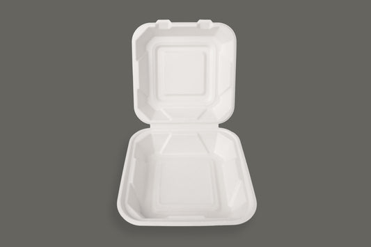 EcoPaack Bagasse Clamshell Container 8"x8"x3" - 35gm - Qualité Premium
