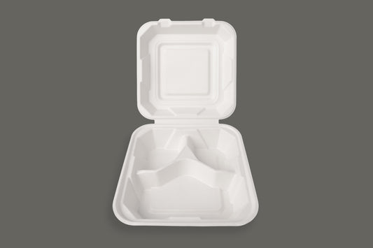 EcoPaack Bagasse Clamshell Container 8"x8"x3" 3 Compartiments