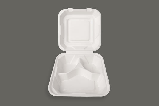 Conteneur Ă clapet pour bagasse EcoPaack 9"x9" 3 compartiments